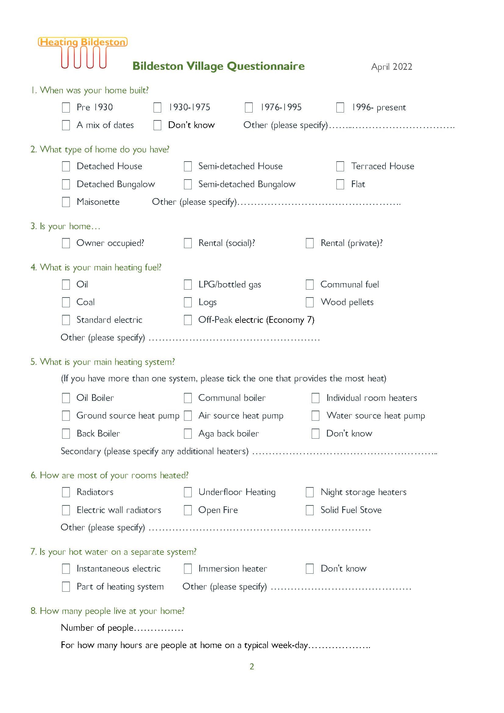Heating Bildeston Questionnaire