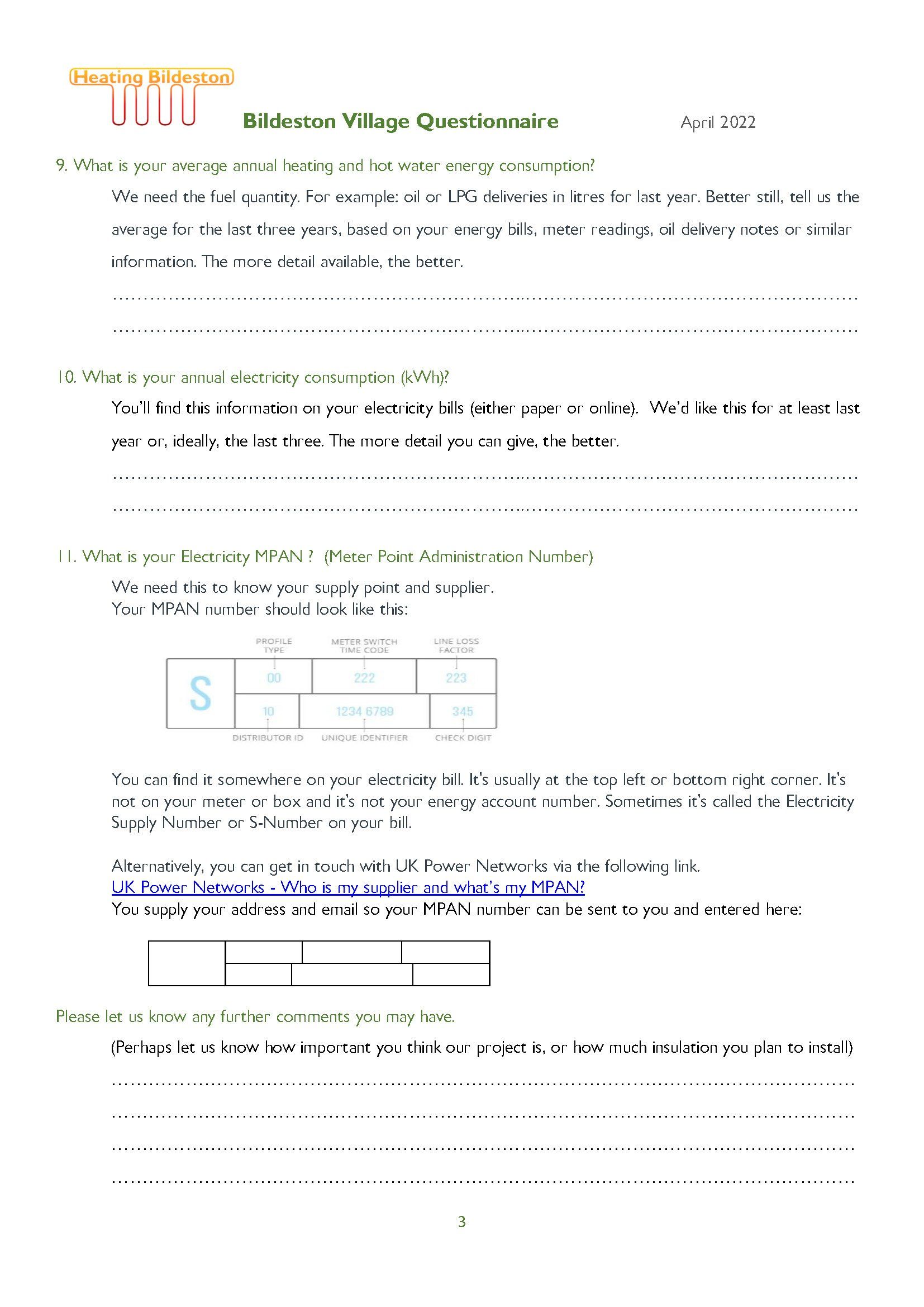 We'll be distributing the Questionnaire to every household in Bildeston - you'll need your fuel and electricity bills to the ready.